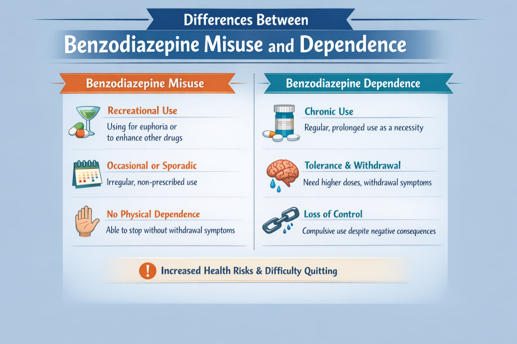 | Feature | Benzodiazepine Abuse | Benzodiazepine Dependence |